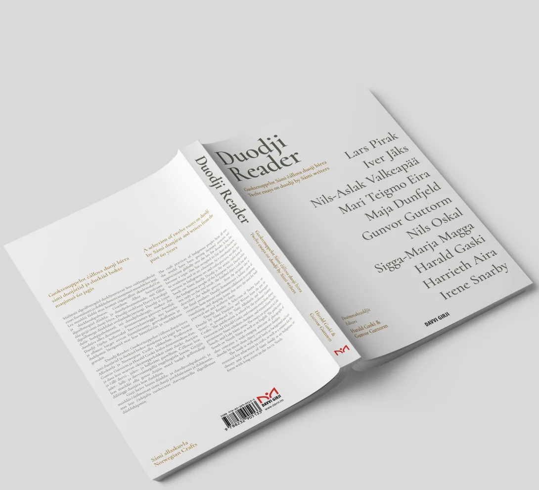 Lea sámi lágadus Davvi Girji mii almmuha girjji Duodji Reader: Guoktenuppelot čállosa duoji birra sámi duojáriid ja dutkiid bokte maŋimuš 60 jagis / A selection of twelve essays on duodji by Sámi duojárat and writers from the past 60 years.